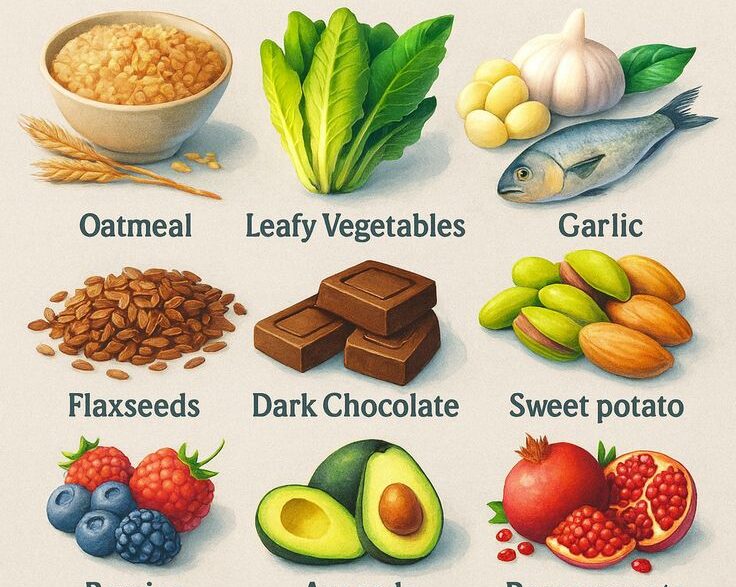 Oats are abundant with fiber in the form of beta-glucan, which helps with cholesterol and blood pressure management. Including at least 3 grams of beta-glucan per day (which is about one bowl of oatmeal) has been shown to reduce systolic blood pressure by 2–3 mmHg. Oats also improve arterial health by supporting better blood flow.