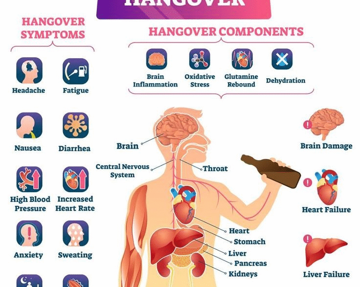 According to science, the main causes of our post-drinking symptoms are nutrient loss, toxic acetaldehyde accumulation, and dehydration.You’ll recover more quickly and resume your regular activities if you prioritize rest, food, and hydration.