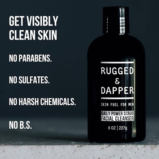 For thorough cleansing, use the natural exfoliant Rugged & Dapper Face Scrub.