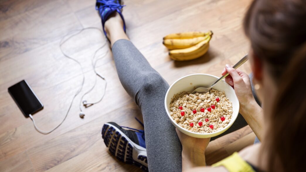 Try to eat within 30–60 minutes. Go-to choices are: A smoothie with banana, milk, and peanut butter.