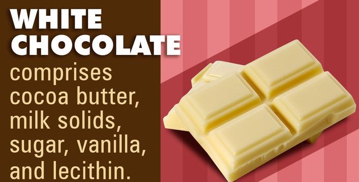 White chocolate is not exactly “real” chocolate, since it contains cocoa butter, milk, and sugar rather than cocoa solids; thus, it’s important to know that it does not contain any flavanols, polyphenols, or antioxidants, which are the main health benefits of chocolate, and therefore, lacks health benefits as well.