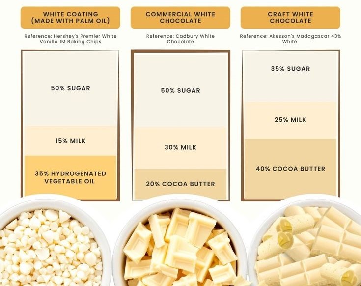 The standard serving of white chocolate (about 40 grams) typically contains around 220 calories, 25–30 grams of sugar, and very little fiber or micronutrients, making it even less nutrient dense than dark or milk chocolate.