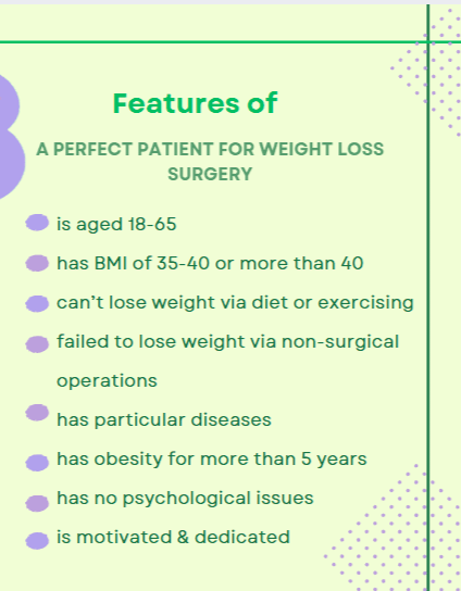 General characteristics of ideal candidates who can go through weight loss surgery are as follows: